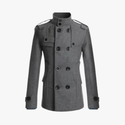 This grey military-style coat combines bold, structured tailoring with unique detailing. Featuring double-breasted buttons, a high collar, and zippered pockets, it delivers a refined look with a modern edge. Ideal for cooler weather, it offers both style and practicality, making it a statement piece for any occasion.